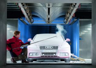 Archiv | Februar 200827.02.2008 Windgeschwindigkeiten bis zu 300 km/h und einmalige Nutzungsvielfalt bietet der neue Audi Klima-Windkanal in Ingolstadt Mit der Einweihung des neuen Klima-Windkanals heute in Ingolstadt nutzt die AUDI AG künftig einzigartige Möglichkeiten im Bereich der Klima-Simulationen. Unter naturgetreuen Bedingungen können die Automobile bei eisiger Kälte oder glühender Hitze mit einer Windgeschwindigkeit von bis zu 300 Kilometer pro Stunde getestet werden. „Das ist einmalig in dieser Nutzungsvielfalt“, betont Peter Fromm, Leiter Entwicklung Aufbau der AUDI AG. Rund € 20 Mio. hat das Unternehmen in den neuen Klima-Windkanal investiert. Er ist Teil des modernen Audi Windkanal-Zentrums in Ingolstadt. Der Klima-Windkanal kann im Gegensatz zum bereits vorhandenen Thermo-Windkanal die Temperatur stärker in den negativen Bereich abkühlen, so dass eine Spanne von minus 25 bis plus 55 Grad Celsius möglich ist. Neben Klimaversuchen, wie Kälte- und Enteisungstests bei extremen Temperaturen, können auch Kühlsimulationen bei sehr hohen Geschwindigkeiten und hohen Temperaturen durchgeführt werden. Versuche zur Kühlleistung von Öl- und Wasserkreislauf, Motor oder Innenraum sind daher bei großer Hitze und klirrender Kälte möglich.