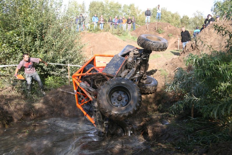 Deutsche Geländewagen Meisterschaft (DGM) 2009 – 5. Lauf in Bramsche09.09.2009 Die zweite Saisonhälfte zur Deutschen Geländewagen Meisterschaft begann beim SCC Bramsche. Trotz schlechter Wetterprognose kamen 74 Starter in den hohen Norden. Das Gelände, das „nur“ aus Sand und Wasser besteht wurde wieder einmal von vielen unterschätzt. Einfache Sandhügel entpuppten sich als perfekte Parkplätze um bequem alle vier Reifen auf einmal wechseln zu können. Durch den Regen wurde der ohnehin weiche Boden noch tiefer, und so manches harmlos aussehende Schlammloch wurde zum undurchfahrbaren Hindernis, und so mancher Allradler lag anschließend auf der Seite. Von Bergeaktionen unberührt setzte der frischgebackene Europameister in der Klasse Standard seine Erfolgsserie fort. Wolfgang und Inge Fröls siegten mit ihrem Jeep YJ souverän vor Henrik Schäfer und Thomas Nest auf einem Jeep CJ5. Den Yetijägern vom ASC Melsungen klebte dagegen das Pech an den Hacken: mit fünf Autos angereist hielt nur der Proto „May way“ von Thomas May alle DGM-Sektionen durch. Und das wurde belohnt: trotz Umfaller in der Sektion 14 wurde er Dritter in der Klasse der Prototypen. Michael Terme und Achim Bindemann wurden jeweils durch einen Vorderachsdefekt aus dem Rennen geworfen.