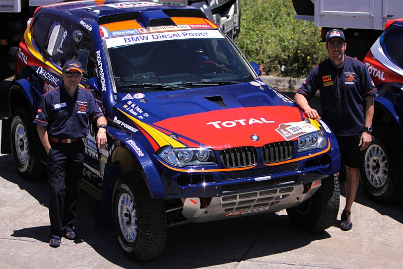 Stand nach Etappe 01, Colón (RA)-Córdoba (RA); 199/684 km WP 01/Gesamt Pos.; Team; Fahrzeug; Etappe 01; Gesamtzeit 1. Nani Roma/Michel Périn (E/F) BMW 2:11.15 Std. 2. Carlos Sainz/Lucas Cruz (E/E) Volkswagen 2:13.22 Std. + 2.07 Min. 3. Stéphane Peterhansel/Jean-P. Cottret (F/F) BMW 2:14.05 Std. + 2.50 Min. 4. Nasser Al-Attiyah/Timo Gottschalk (Q/D) Volkswagen 2:14.44 Std. + 3.29 Min. 5. Giniel de Villiers/Dirk von Zitzewitz (ZA/D) Volkswagen 2:15.46 Std. + 4.31 Min. 6. Robby Gordon/Andy Grider (USA/USA) Hummer 2:16.03 Std. + 4.48 Min. 7. Krzysztof Holowczyc/Jean-Marc Fortin (PL/B) Nissan Pick-up 2:17.22 Std. + 6.07 Min. 8. Mark Miller/Ralph Pitchford (USA/ZA) Volkswagen 2:17.28 Std. + 6.13 Min. 9. Leonid Novitsky/Andreas Schulz (RUS/D) BMW 2:18.17 Std. + 7.02 Min. 10. Maurício Neves/Clécio Maestrelli (BR/BR) Volkswagen 2:18.23 Std. + 7.08 Min.