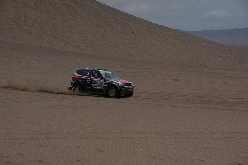 Rallye Dakar 2010, 6. Etappe – Peterhansel wieder auf Erfolgskurs07.01.2010 Stéphane Peterhansel und Jean-Paul Cottret können nach den technischen Problemen am Vortag durch einen Tagessieg auf der sechsten Etappe zwei Plätze gutmachen und stehen mit ihrem X-Raid BMWnach der Stage von Antofagasto nach Iquique nun auf dem achten Platz in der Gesamtwertung. Weiter in Führung die drei VW Race Touareg mit Sainz, El-Attiyah und Miller am Steuer. Nachdem Stéphane Peterhansel gestern aufgrund einer defekten Kardanwelle nur auf den 33. Platz ankam und somit auch die Gesamtführung abgeben musste, durfte er heute als 14. ins Rennen starten und überholte auf der Etappe elf Fahrzeuge. Der Franzose holt sich damit seinen 20. Tagessieg im Auto bei einer Dakar (53. inklusive Motorrad) und den dritten Tagessieg für das hessische X-raid Team bei der diesjährigen Dakar. 53 Etappensiege bei der Dakar, das bedeutet einen neuen Rekord für den Franzosen, der heute den Spanier Carlos Sainz (VW) um 47 Sekunden und den Amerikaner Mark Miller (VW) um knapp neun Minuten distanzierte. Dennoch besteht für die Wolfsburger kein Grund zur Sorge, da drei Race Touareg in der Gesamtwertung immer noch die vorderen drei Plätze belegen. „El Matador“ Sainz führt 15 min 24 sec beziehungsweise. 17 min 47 sec vor seinen Kollegen Mark Miller und Nasser Al-Attiyah (VW).