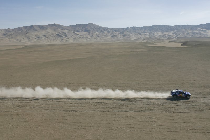 Rallye Dakar 2010, 7. Etappe – Duell zwischen VW und BMW auf der längsten Etappe08.01.2010 Vier VW Race Touareg und zwei X-Raid BMW teilen sich die ersten sechs Plätze bei der siebenten und mit 600 Kilometern Wertungsprüfung bislang längsten Etappe der diesjährigen Dakar. Im Gesamtklassement liegen weiterhin drei VW vorne, nun aber gefolgt von den beiden BMW. Von Iquique nach Antofagasta in der chilenischen Atacama-Wüste gewann das VW-Team Nasser Al-Attiyah/Timo Gottschalk die mit 600 Kilometern bislang längste Etappe. Es kam mit seinem Race Touareg nach einem packenden Zweikampf und vielfachen Führungswechseln 3.29 Minuten vor Stéphane Peterhansel/Jean Paul Cottret im X-raid-BMW ins Ziel. Auf den ersten 80 Kilometern hatten sich die beiden Fahrer gegenseitig einzelne Sekunden abgejagt. Für Al-Attiyah war es der zweite Etappensieg nach seinem Erfolg am zweiten Tag der Rallye. Der im Gesamtklassement führende Carlos Sainz beendete die zunächst aus Dünen, dann einer Oberfläche aus „Salar"-Salzkristallblöcken (mit großen Blöcken aus getrocknetem Salz übersäte Weite, hier fällt das Tempo auf weniger als 10 km/h) und schließlich schnelleren, steinigen Abschnitten bestehende Strecke als Dritter der Tageswertung. Mark Miller (ebenfalls VW) belegte die vierte Position. Die Vorjahressieger Giniel de Villiers/Dirk von Zitzewitz (ZA/D) erreichten mit ihrem Rade Touareg vor dem Ruhetag nach zwei Reifenschäden den sechsten Etappenrang, liegen aufgrund vorheriger Zeitverluste allerdings 4:31 Stunden hinter der Spitze.