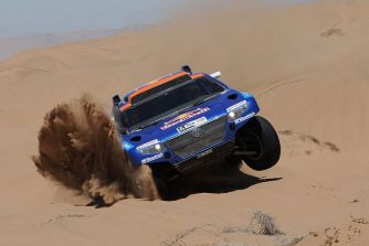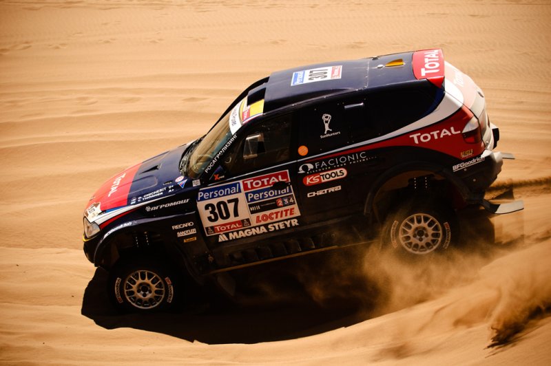 Rallye Dakar 2010, 9. Etappe – Dreifachsieg für VW11.01.2010 Mit einem Dreifachsieg beendet VW die neunte Etappe der diesjährigen Dakar. Gleichzeitig teilen sich die ersten zehn Plätze der Tageswertung vier VW sowie je drei BMW und Mitsubishi. Die ursprünglich 354 Kilometer lange Sonderprüfung der neunten Etappe wurde um mehr als die Hälfte auf nur noch 170 Kilometer verkürzt. Wegen einzelner Nebelbänke konnten die Hubschrauber nicht starten und so hatte der Veranstalter den Start um 3:45 Stunden nach hinten verschieben müssen, und die Streckenlänge entsprechend angepasst. Nasser Al-Attiyah und Timo Gottschalk (Q/D) gelang auf dem Weg von Copiapó nach La Serena in Chile der Tagessieg vor ihren Teamkollegen Carlos Sainz/Lucas Cruz (E/E) sowie Giniel de Villiers/Dirk von Zitzewitz (ZA/D). Mark Miller/Ralph Pitchford (USA/ZA) erzielten in einem weiteren Race Touareg die fünftbeste Zeit hinter den X-Raid-Piloten Guerlain Chicherit/Tina Thörner im BMW. Die Gesamtwertung führt weiterhin Carlos Sainz vor Nasser Al-Attiyah und Mark Miller an. Al-Attiyah verkürzte heute jedoch seinen Rückstand auf den Führenden um sechs auf nur noch 8.36 Minuten.