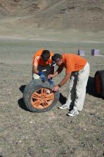 Transsyberia Rallye 2007 - Viele Hunde sind des Hasen Tod - Seite 3Dieses Problem trifft selbst Weltklassefahrer wie Armin Schwarz, der auf der nur gut 100 Kilometer langen 9. Etappe von Ölgii nach Mankhan drei Platten fuhr und so die drucklosen Pneus immer wieder durchtauschte, um schließlich doch noch auf der Felge das Etappenziel zu erreichen. Die Führung im Gesamtklassement war damit für ihn und seinen Beifahrer Oliver Hilger verloren, am Ende des Tages stand der siebente Platz für die beiden auf der Ergebnisliste. Über solcherlei Reifenprobleme kann das Suzuki-Werksteam nur staunen, das beide Fahrzeuge relativ problemlos ins Etappenziel gebracht hat. "Scheibenwaschen und alles sauber machen, habe ich meinen Mechanikern gesagt," flaxt Katja Poensgen, die ehemalige Motorrad-GP-Fahrerin, die nun den Suzuki Grand Vitara des einzigen Damenteams im Wettbewerb steuert. Und mit einem Seitenblick zum gebeutelten ehemaligen Rallye-Europameister Armin Schwarz: "Wir fahren halt einen Suzuki…"