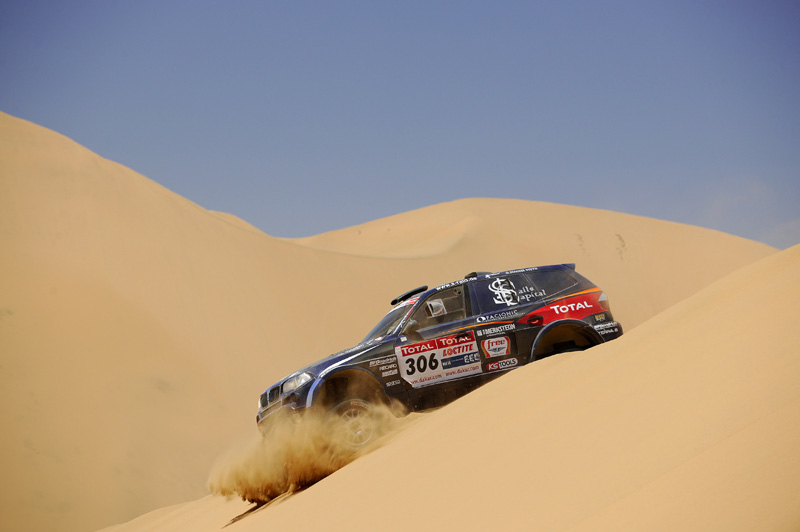 Rallye Dakar – Rallye Dakar – Carlos, der Unbezwingbare / Seite 2Der Vorsprung von Volkswagen auf den besten Verfolger ist in der Gesamtwertung erstmals auf über eine Stunde angewachsen: Nani Roma und Lucas Cruz (E/E) als einziges verbliebenes Mitsubishi-Team steuerten ihren Racing Lancer auf den fünften Wertungsplatz und liegen damit weiterhin auf Gesamtrang vier. Doch ihnen fehlen nun bereits 1:13 Stunde auf Carlos Sainz. Wieder einmal ging der vierte Platz der Tageswertung an ein X-raid BMW Team – diesmal waren es Guerlain Chicherit/Matthieu Baumel, die sich damit vom 16. auf den 13. Platz der Gesamtwertung verbesserten. Pech hatte Orlando Terranova, der die neunte Etappe auf dem vierten Platz bendete: Beim Versuch, einem Motorradfahrer auszuweichen warf der Argentinier seinen X-raid BMW in ein vier Meter tiefes Loch. Auf dem Dach gelandet, waren die Beschädigungen am Auto so groß, dass an eine Weiterfahrt nicht zu denken war – die beiden Piloten blieben jedoch unverletzt. Auch Dieter Depping und Timo Gottschalk erlebten in ihrem Race Touareg einen kuriosen Unfall, der sie weit zurückwarf: Hinter einer Dünenkuppe entdeckten sie an der nächsten Talsohle ihren gestrandeten Landsmann Matthias Kahle, konnten ihren Race Touareg aber bei der Bergabfahrt im Sand nicht mehr abbremsen und rutschten dem Buggy des Deutschen ins Heck. Beide Teams konnten die Rallye nach dem Freischaufeln und entsprechendem Zeitverlust jedoch fortsetzen. Die für heute geplante elfte Etapppe vom chilenischen Copiapó ins argentinische Fiambalá mit der Andenüberquerung und dem Grenzübertritt von Chile nach Argentinien ist wegen einer „ungünstigen Wettervorhersage“ (Nebel) vom Veranstalter abgesagt und in eine Verbindungsetappe verwandelt worden.
