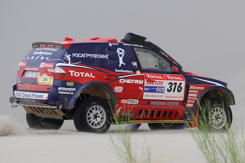 Rallye Dakar – Erster Tagessieg für Mitsubishi auf der 13. Etappe / Seite 2Als bestes VW-Team brachten Dieter Depping und Timo Gottschalk ihren Race Touareg in der Tageswertung, die wie zu Beginn der Rallye Dakar schnelle Schotterabschnitte mit Sprint-Rallye-Charakter bot, als Vierte ins Ziel. Miller/Pitchford beendeten den Tag als Siebte, de Villiers/von Zitzewitz als Achte. Der 36-jährige Giniel de Villiers liegt damit auf dem ersten Platz der Gesamtwertung 2:20 Minuten vor Mark Miller. Robby Gordon fehlen als Drittem bereits 1:27 Stunde auf die Spitze. Mit Dieter Depping als Siebtem liegt auch der dritte verbliebene Race Touareg unter den ersten zehn des Gesamtklassements. Erfolgreich verlief der Tag auch für X-raid BMW: Neben dem französischen Fahrer-Duo Guerlain Chicherit/Matthieu Baumel, die ihren X3 auf dem dritten Platz der Tageswertung ins Ziel brachten, holten sich die Russen Leonid Novitskiy und Oleg Tyupenkin Platz fünf. In der Gesamtwertung liegen die beiden X-raid BMW Teams nun auf den Rängen neun und acht. Die heutige letzte Etappe bringt die Teams auf schnellen Pisten im Flachland von Cordoba zurück nach Buenos Aires. Dabei stehen 791 Km durch die legendäre Pampa auf dem Programm, davon 227 mit Zeitmessung. Nach zwei Wochen auf unterschiedlichstem Terrain finden die Teilnehmer auf dem letzten Teilstück vor dem Rallye-Ziel wieder vertrautes Gelände vor – ähnlich dem zu Beginn der Rallye.