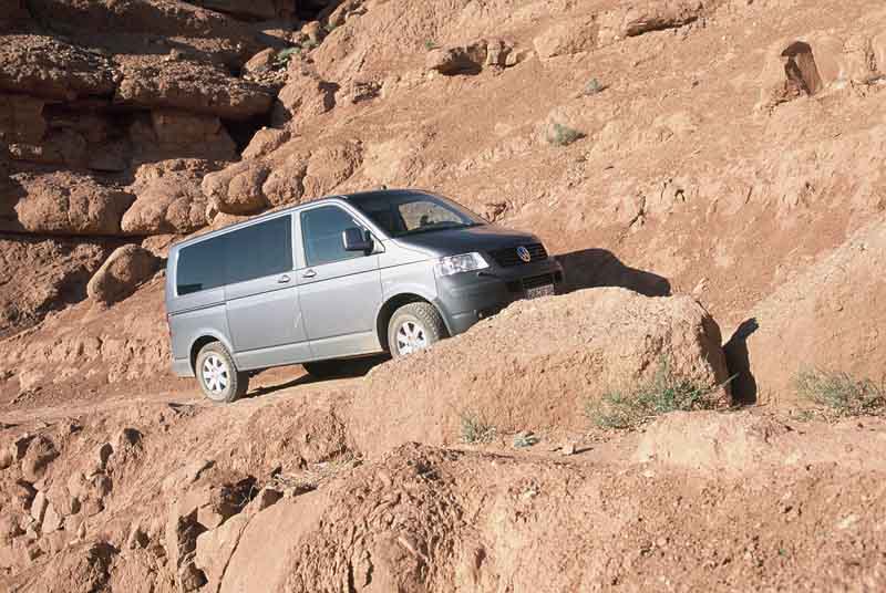 Reise-Fahrbericht: Mit dem Volkswagen T5 4MOTION in Marokko durch Fels und Geröll - Seite 10Nur zweimal kommt Hektik auf. Einmal, weil wir versuchen wollten, einen scharfen Linksknick in einem fast 20-prozentigen, sandigen Steilstück ohne Hinterachssperre zu fahren und dabei den Motor abgewürgt haben. Ein zweites Mal auf einem ebenfalls sehr steilen, holprigen Anstieg auf blank geschliffenem Fels. Auch hier wäre das rechtzeitige, frühere Einlegen der Hinterachssperre besser gewesen. Ohne sie musste der 4MOTION-Zugriff heftig arbeiten, was er vorübergehend mit einem Geruch nach verbranntem Kupplungsbelag quittierte. Wenn man alles in allem dann auch noch in die Wagschale wirft, dass uns
