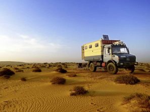 Parks.montiert. Ein 540 Liter großer Dieseltank gewährleistet die nötige Reichweite in Regionen mit geringer Tankstellendichte. Die durchquert das globetrottende Paar mit ihrem Siebentonner zuhauf: Seit dem Start im April 2013 führte die Reise durch Südosteuropa über das oft unwegsame anatolische Hochland und den Iran. Die Sanddünen in der Dasht-e-Kavier-Wüste waren die bislang größte Herausforderung für das „Glaarkshouse“. Doch viel beeindruckender als die Leichtigkeit, mit welcher der U 1300 L das Gelände meisterte, waren die leuchtenden Augen der Iraner angesichts des fremden Unimog.