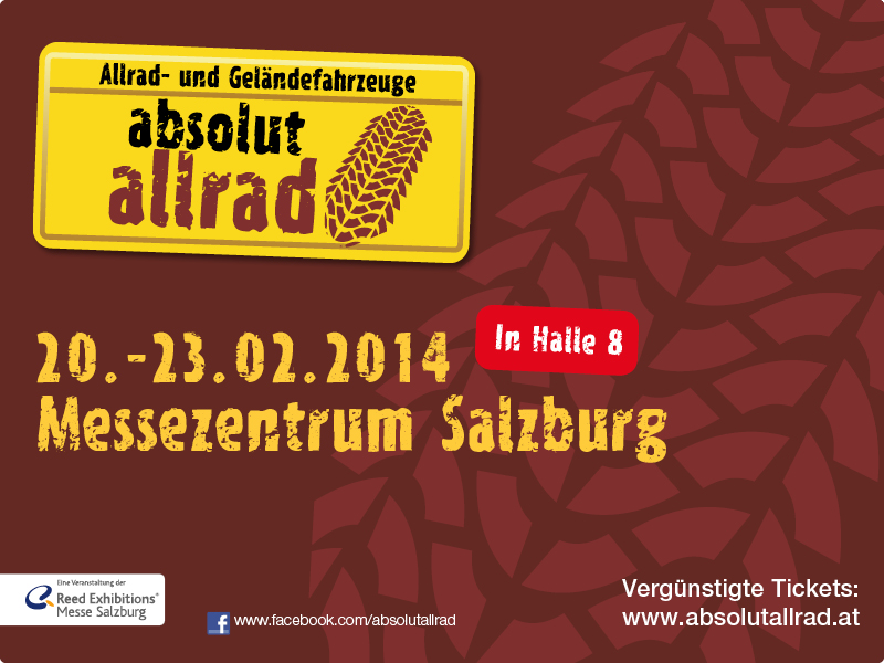21. IMOT in München: Schmankerl für Offroad-FansBuchrezension: Praxisratgeber Klassikerkauf – Land Rover Serie III, 1971-1985Advents-Schaufenster-Kalender 2013 bei Mercedes-Benz München: Einzigartige G-schenkeSicher und sparsam unterwegs mit SommerreifenBenzinpreise vergleichen: Lohnt es sich wirklich?Caravan Salon Düsseldorf 2012 Nachlese: Highlights aus der Allrad- und Outdoor-EckeGo4Afrika Expedition 2012: 2 x 4 Wochen Winterflucht mit 4x4„absolut allrad“ 2012 in Salzburg – Geländegängige LeistungsschauMarkom Geländefahrschule: Nächste Trainings am letzten Februar-Wochenende18. IMOT in München vom 18. bis 20. Februar: Kleines 4x4 unter großem 2x14x4action: Neue Fachzeitschrift ab 8. Februar am KioskOffroad-Messen Februar: „Absolut Allrad“ in Wien und SalzburgBuchbesprechung – Martin Braun: Allrad, der gute Rat bei Kauf und FahrtMarkom Travel Trophy: Gelände-Training zum JahresausklangOff-Road-Experience in Dubai: Der Ruf der WüsteDrift and Drive mit Uwe Nittel: Winter-Rallyetraining 2010 mit Mitsubishi Evo X in FinnlandBMW: Aktuelle Winterfahrtrainings 2008/2009Porsche Sport Driving School und Travel Club: Neues Programm für 2009Land Rover-Modellautos – Cute little LandiesWarnweste ins Auto, bevor es in Urlaub gehtDeutschlands Autofahrer tanken viel zu teuerAchtung Urlauber: In Österreich jetzt automatische VignettenkontrolleVerkehrssünden im AuslandMit nur acht Flensburg-Punkten zur MPU Urteil - ADAC gegen Aufweichung der PunkteregelnFerientermine in Deutschland - Der ADAC erwartet die dicksten Staus im Juli und August Urteil: Geld zurück bei KilometerschwindelWohnmobilbesteuerung: Für viele Camper wird es teuer - ADAC stellt Tabelle zur Berechnung ins Internet