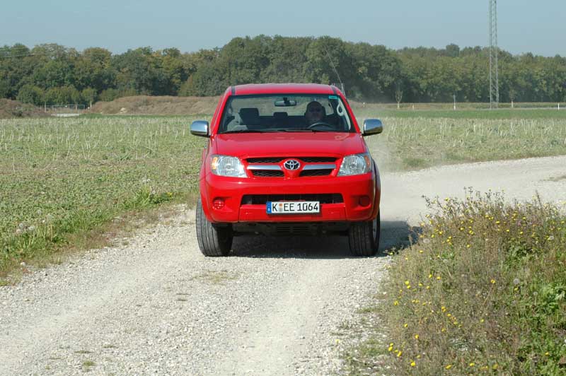 Schrot und Korn - Toyota Hilux 2.5 D4-D Double Cab Sol - Seite 3Wer mehr Kraft einfordert, sollte also zu den leistungsstärkeren Versionen greifen, die da nun kommen: die im Hubraum identische 120 PS-Version oder den avisierten 3.0-Liter Turbodiesel mit 171 PS. Puristen, die es gemütlich lieben, liegen mit der vorerst im Programm verbleibenden 102-PS-Ausführung aber genau richtig: Mit ihr geht es durchweg kultiviert, geruhsam und beschaulich voran, was für die Fahrleistungen ebenso wie für den Verbrauch gilt. Die langen Schaltwege der Fünfgang-Kulisse, die knapp über 18 Sekunden bis Tempo 100 sowie die rund 150 km/h Höchstgeschwindigkeit sind Werte, die den Hilux-Double-Cab-Fahrer zur Gelassenheit erziehen – wenn es nicht schon diese Tugend war, die ihn zum Kauf dieser Variante des Toyota-Pickup bewogen hat. Die Welt vorüberziehen lassen, neu entdecken, der Hektik des Alltags entfliehen – und sich über einen bescheidenen Verbrauch von 9,4 Liter Diesel auf 100 km freuen.