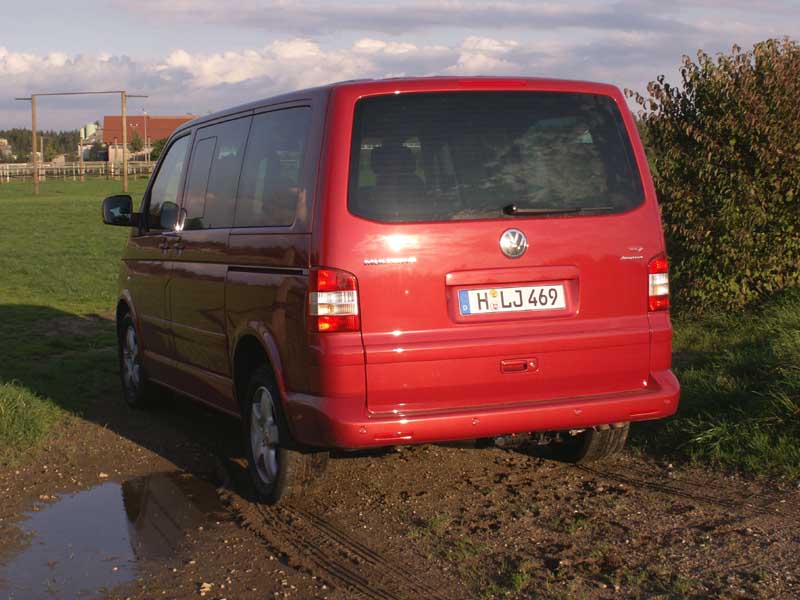 Ein SU-Van für viele Fälle - VW T5 Multivan 2.5 TDI 4motion - Seite 3Das verdanken wir dem permanenten Allradantrieb mit einer elektronisch geregelten Haldex-Lamellenkupplung, die recht flott auf mangelnde Traktion an der Vorderachse reagiert und die Kraft in vortriebspassender Dosierung an die Hinterräder delegiert. Anders als noch beim Viskoelement des syncro genannten Allrads in den Vorgängern T3 sowie T4 lassen sich zudem beim Rangieren keine Verspannungen im Antriebsstrang registrieren. So gefällt der T5 4motion im asphaltierten Geläuf mit einem sicheren Fahrgefühl, präziser Lenkung, komfortabel- sportlichem Fahrwerk und dezenter Akustik im Innenraum sowie einer kräftig zupackenden Scheibenbremsanlage. Für einen Gelände- schwierigkeitsgrad mehr kann man die gegen Aufpreis implantierte Hundertprozent-Hinterachs-Sperre zuschalten und zudem auf das ebenfalls optionale Höherlegungspaket vertrauen, das dem T5 4motion drei zusätzliche Zentimeter an Bodenfreiheit beschert. Für den Regelfall von Otto-Normal-Allradler sollte das reichen – es muss ja nicht immer gleich der größere Bruder mit Seikel-Fahrwerk oder gar der noch größere und höhere T5 „extreme" sein. Ob groß oder klein: In jedem Fall sollte man sich zum Meistern speditiver Allfälligkeiten eher für den Multivan als den ebenfalls in dieser technischen Konstellation erhältlichen Caravelle entscheiden, will man die Vorteile des SUV-Unterbaus mit denen einer klassischen Großraumlimousine verbinden. Zumal eine solche Kombination in der aktuellen Allrad-Szene selten geworden ist: Wir denken an den T4 syncro selig sowie dessen kernige Wegbegleiter Mitsubishi L300 4x4, Space Gear Allrad oder Hyundai Starex 4WD. Der aktuelle Seitenblick erfasst die Wettbewerber vom Schlage eines Mercedes-Benz Vito 4x4 oder Ford Transit AWD.