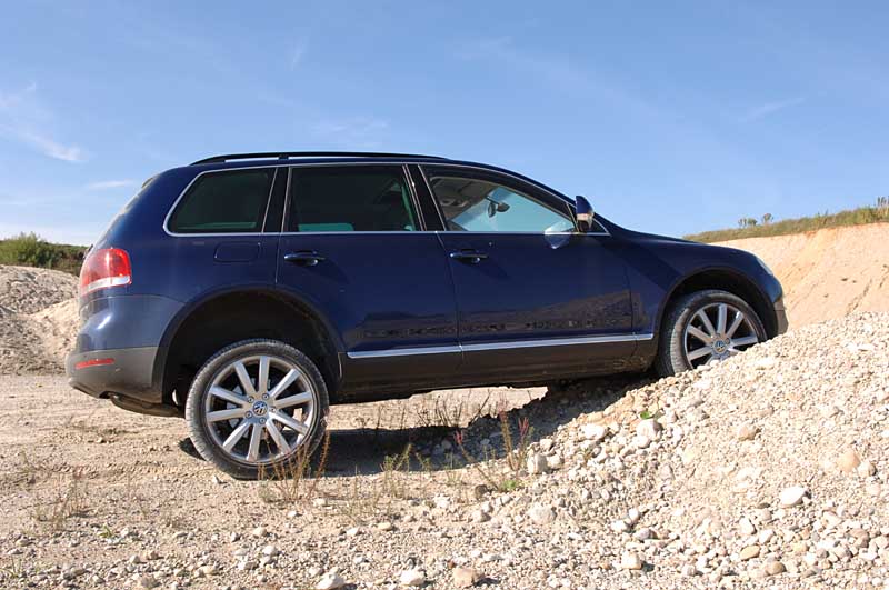 Idealbesetzung - VW Touareg V6 TDI Automatik - Seite 4Doch die wirklich große Stunde des Luftfeder-Fahrwerks schlägt im Gelände: Über einen zweiten Drehschalter lässt sich die Bodenfreiheit des Touareg auf bis zu 30 cm erhöhen. So gerüstet überwindet der Wolfsburger, der im tschechischen VW Werk in Bratislava montiert wird, auch gröbere Hindernisse, ohne dass der Fahrzeugboden Gefahr läuft, beschädigt zu werden. Gleichzeitig erlaubt das Luftfeder-Fahrwerk auch hohe Geschwindigkeiten auf ruppigen Pisten: Selbst bei größeren Löchern schlägt es nicht bis zum Anschlag durch und sorgt gleichzeitig für stets sicheren Bodenkontakt aller vier Räder. Noch leistungsfähiger im Gelände wird der Touareg mit den optionalen entkoppelbaren Stabilistoren für 1.910 Euro, die die Achsverschränkung deutlich erhöhen. Und weil wir schon bei den Extras sind: Wer den Touareg für wirklich harte Geländeeinsätze rüsten will, der sollte auch gleich die Differenzialsperre für die Hinterachse für 770 Euro mitbestellen – so wird er dann schon fast zur „Eier legenden Woll-Milch-Sau" mit souveränen Fahreigenschaften auf der Straße und dem Offroad-Potenzial eines Geländewagens von altem Schrot und Korn.