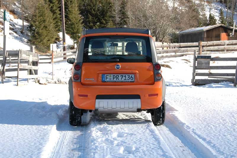Kurz, cross, knackig - Fiat Panda 1.3 JTD Multijet 16V Cross 4x4 - Seite 5Bedenkt man, dass dem Panda 4x4 zur besseren Kletterfähigkeit und besseren Beschleunigung eine relativ kurze Achsübersetzung implantiert wurde, verwundert es nicht weiter, dass das temperamentvolle Triebwerk sich selten mit dem vom Werk versprochenen Durchschnittsverbrauch von 5,3 Liter auf 100 Kilometer bescheidet. Fahrer, die sich von Charakter und Phonetik des Panda-Dieselchens verleiten lassen, können den Spritkonsum auf bis zu sieben Liter (naja gut: forcierte Gangart auf der Autobahn) hochtreiben und werden sich in der Regel bei 6,3 bis 6,6 Liter einpendeln. Entsprechend muss man auch mit einem relativ hohen Verbrauch bei intensiveren Geländeausflügen rechnen, zu denen der Panda Cross 4x4 mit seinen bereits geschilderten theoretischen Talenten einlädt: Wie schon bei kritischen Straßenverhältnissen verrichtet die vom britischen Automobilzulieferer GKN (www.gkndriveline.com) entwickelte und gefertigte Viskokupplung zuverlässig ihren Dienst. Das ins hintere Differenzialgehäuse integrierte, mit einem zähflüssigen Viskoseöl gefüllte Lamellenpaket sorgt für eine variable Momentverteilung zwischen den Achsen: Im Normalfall werden rund 98 Prozent der Kraft auf die Vorderräder geleitet. Drehen diese mangels ausreichender Traktion auf schlüpfrigem Untergrund durch, können laut Fiat bis zu 70 Prozent des Drehmoments an die Hinterräder verlagert werden.