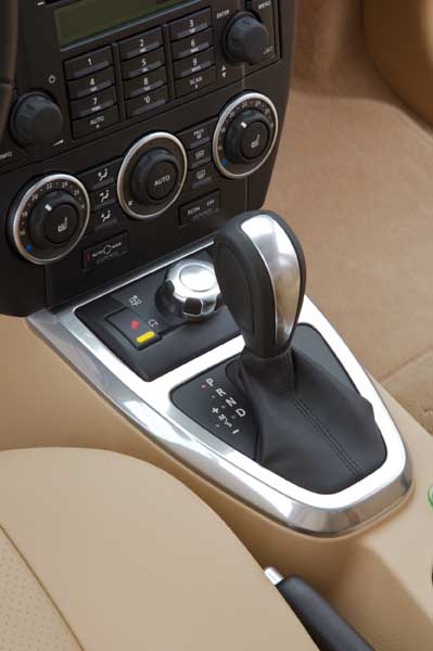 Die jeweiligen Programmstufen des „Terrain Response"-System werden über einen Drehknopf auf der Mittelkonsole angewählt: Die relativ klaren Symbole stehen für die Modi „normaler Straßeneinsatz" (taugt auch für leichtes Gelände), „Gras und Schnee" (was für prinzipiell traktionsmindernden, rutschigen Untergrund auf und abseits der Straße steht), „Sand" und „Schlamm". Das angesteuerte Wunschprogramm beeinflusst das Drehzahlverhalten des Motors, die Schaltcharakteristik des Automatikgetriebes, die elektronische Regelung der Kraftverteilung über die Haldex-Kupplung sowie die Reaktion aller anderen elektronischen Zutaten wie ABS, DSC (die Stabilitätskontrolle) oder ETC (die Traktionskontrolle).