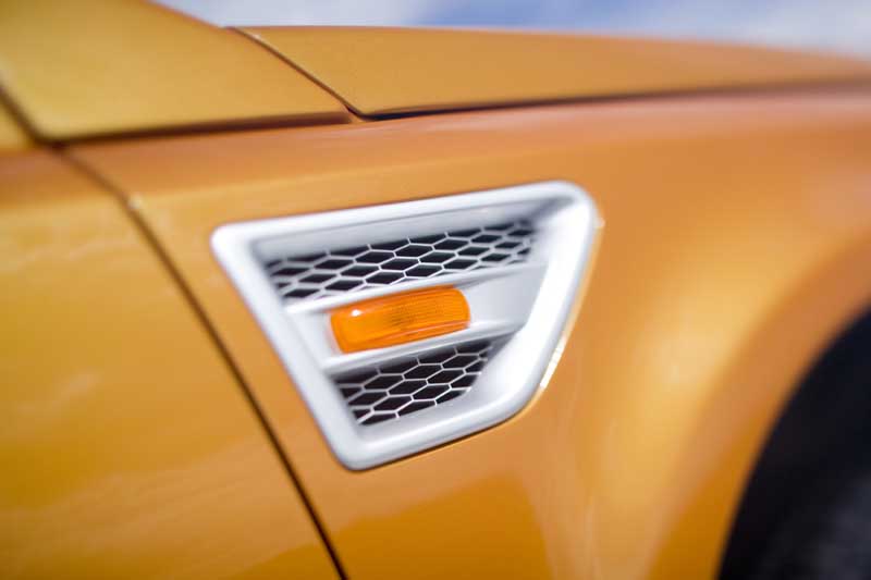 Bleiben wir noch kurz bei den Geländetalenten, die der neue Freelander zu bieten hat: Zu den unterstützenden Komponenten gehören die ordentliche Bodenfreiheit von 210 mm sowie die traditionell kurzen Überhänge der kompakten, nunmehr 4,50 m langen Karosserie. Bei deren Styling hat sich Chefdesigner Geoff Upex von den Grundzügen des Vorgängers und charakteristischen Elementen der Markengeschwister Discovery 3 und Range Rover Sport inspirieren lassen: „Der neue Freelander sollte auf den ersten Blick als Land Rover erkennbar sein. Mit dem robusten Auftritt unserer Marke und zugleich den sportlichen Linien eines souveränen Straßenautos." Ein Anspruch, den Upex erfüllt hat: Der Wiedererkennungseffekt ist vorhanden, die Anmutung modern. Die markanten Wölbungen an den seitlichen Motorhaubenkanten wirken nicht nur kraftvoll, sondern dienen auch als optische Peilkante im Gelände.