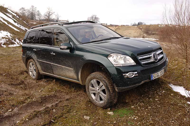 GL - wie Gaaanz Lang - Mercedes GL 320 CDI - Seite 5Im Gelände kommt der GL 320 CDI weiter als man es einem solchen Kaliber von Fahrzeug auf den ersten Blick zutraut. Serienmäßig haben die Mercedes-Mannen dem GL nämlich das komplette Offroad-Pro-Technikpaket implantiert. Dazu gehört zum einen der permanente Allradantrieb mit sperrbarem Zentral- und Hinterachsdifferenzial, zum anderen die mit 2,93:1 sinnvoll kurze Geländeuntersetzung sowie die Vielzahl elektronsicher Helferchen, die heute bei einem modernen Offroader einfach dazu gehören. So macht es keine Mühe, den GL mit Kriechgeschwindigkeit durch die Prärie zu zirkeln. Muss man in einer Steilpassage anhalten, erleichtert eine Berg-Anfahrhilfe das Losfahren, bergab ist man mit der Berg-Abfahrhilfe auf der sicheren Seite - die Geschwindigkeit, mit der der GL zu Tale rollt, lässt sich über den Tempomat-Lenkradhebel im Bereich zwischen vier und 18 km/h vorwählen. Für brauchbare Geländewinkel sorgt das Luftfederfahrwerk, das dem GL darüber hinaus eine Bodenfreiheit von über 30 cm beschert. Doch in der höchsten Gelände-Stellung federt das Fahrwerk kaum mehr, jeder Stein wird spürbar, und damit die Fahrsicherheit nicht unter der Minimal-Federung leidet, ist die maximale Geschwindigkeit nun auf 30 km/h begrenzt.