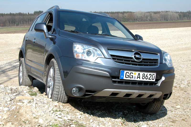 Opel Antara 2.0 CDTI - Globalisierungs-Produkt - Seite 4Normalerweise werden beim Antara die Vorderräder angetrieben. Sobald hier jedoch Schlupf auftritt, leitet eine elektronisch angesteuerte Lamellenkupplung bis zu 50 Prozent der Motorkraft an die Hinterachse. Nur einen Sekundenbruchteil lang drehen beim Kavalierstart an der Ampel die Vorderräder durch, ehe die Hinterräder ihnen traktionsfördernd zu Hilfe eilen und die Traktionskontrolle des serienmäßigen Stabilitätsprogramms (das sich für den Geländeeinsatz auch abschalten lässt) regelnd eingreift. Für weitere Offroadausflüge fehlt dem Antara ein Untersetzungsgetriebe und auch der Auspuff hängt recht weit unter dem Fahrzeugboden heraus, was bei Grundberührung schnell einmal zu Beschädigungen führen kann. Für den Einsatz in leichterem Terrain hat Opel den Antara aber gerüstet: Unter dem Motor findet sich ein relativ stabiler Kunststoff-Unterfahrschutz, zwanzig Zentimeter Bodenfreiheit reichen auch für üble Feldwege und auf steilen Bergabpassagen hilft ein Bergabfahrassistent, die Geschwindigkeit niedrig zu halten.