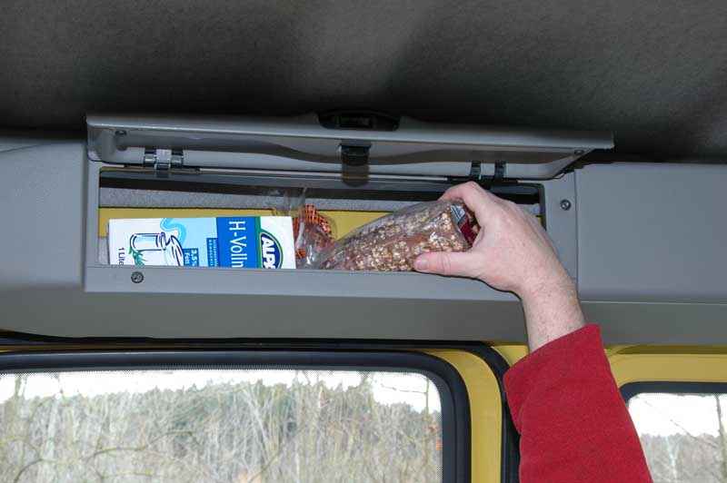 Die wahren Werte des Kangoo offenbaren sich allerdings im Inneren der geräumigen Kombikarosserie. Und zwar vor allem hinter den beiden Fond-Schiebe- sowie den zwei unterschiedlich großen Hecktüren. Bereits als voll genutzter Fünfsitzer (der mittleren Platz auf der Rückbank ist aber trotz Dreipunkgurt nur eine Kurz-Zeit-/Strecken-taugliche Notlösung) fasst das Ladeabteil familienfreundliche 550 Liter auf einer 94 cm langen Ladefläche. Klappt man die asymmetrisch geteilte Rückbank komplett nach vorne, lassen sich auf 1,40 m Länge stattliche 2.500 Liter speditieren. Was in des Wortes wahrster Bedeutung zu werten ist: Die Anschlagsbegrenzung an den Scharnieren der Hecktüren ausgeklinkt, lassen sich durch die rund 1,20 x 1,115 m große Hecköffnung selbst montierte Kleinmöbel einladen. Obacht ist letztlich nur aufgrund der Stauboxen im Dachgeschoß des Kofferraums angesagt, die dessen Höhe und Breite begrenzen. Hier lassen sich, ebenso wie in den übrigen, im Innenraum verteilten Ablagen, diverse Alltags- und Fernreiseutensilien deponieren.