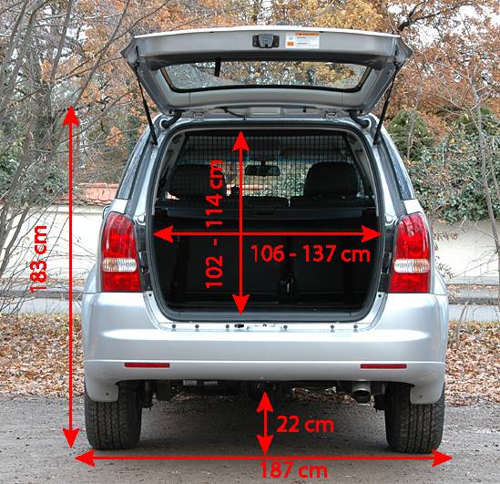 Stahl-Karosserie auf Leiterrahmen; 4 Türen, oben angeschlagene Heckklappe, 5-7 Sitzplätze |