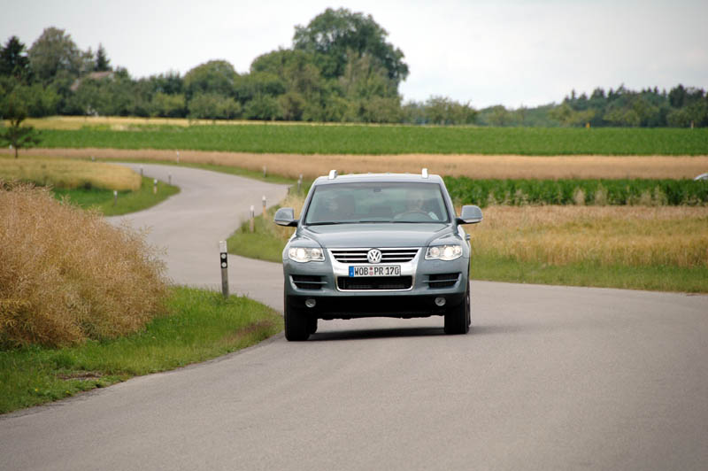 VW Touareg 3.0 V6 TDI - Beliebte Mitte - Seite 3Dass sich ein so ausgerüsteter Touareg erstklassig fährt, darf erwartet werden - so bleibt dem Tester nicht viel mehr, als Daten aufzulisten und das Haar in der Suppe zu suchen. Der V6 TDI zeigt sich als komfortable Antriebsquelle, die sich keine Blößen bei der Laufruhe gibt. Die Fahrleistungen sind auch einem Fahrzeug dieser Klasse angemessen: Neun Sekunden für den Standardsprint vom Stand auf Tempo hundert gehen ebenso in Ordnung wie eine Spitze von 210 Stundenkilometer. Das in seiner Charakteristik dreifach verstellbare Luftfederfahrwerk stellt Komfortliebhaber ebenso zufrieden wie sportlich orientierte Zeitgenossen, die jenes Plus an Handlichkeit - speziell auf kurvigen Landstraßen - schätzen werden, das der adaptive Wankausgleich bringt. Dennoch bleibt das hohe Gewicht des Touareg stets spürbar - und für die ganz große Familie ist er trotz seiner Länge von 4,75 Meter zu klein: Eine dritte Sitzreihe, die ihn zum Siebensitzer machen würde, ist für den Touareg nicht zu haben.