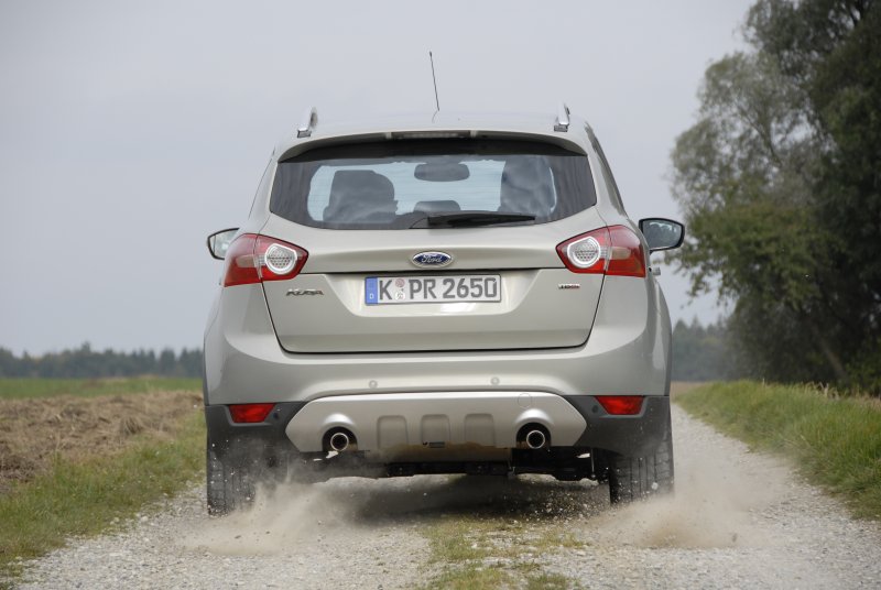 Ford Kuga 2.0 TDCi 4x4 – Fun Cruiser / Seite 4Gleichzeitig reagiert der Allradantrieb des Kuga flexibel auf die unterschiedlichen Straßenbeschaffenheiten: Während ein Durchdrehen der Reifen auf Asphalt unterbunden wird, lässt die Elektronik auf sandigen oder matschigen Passagen mehr Rad-Schlupf zu und verbessert dadurch die Offroad-Tauglichkeit des Crossovers. Über den Bordcomputer lässt sich darüber hinaus die Lenkung des Kuga auf die Bedürfnisse des Fahrers und das Einsatzgebiet einstellen. Per Hebel am Lenkrad kann die elektro-hydraulische Lenkkraftunterstützung in drei Stufen variiert werden: „Standard“, „Komfort“, „Sport“. Damit erhält der sportliche Fahrer das von ihm gewünschte Feedback von der Straße, während andererseits im Stadtverkehr oder im Gelände die Richtungsbefehle besonders leichtgängig erfolgen können. Der Nachteil: Eine Änderung des eingestellten Programms ist nur im Stand möglich und das Suchen der entsprechenden Unterfunktion im Bordcomputer gerät ein wenig umständlich.