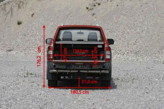 Leiterrahmen, Stahl-Karosserie mit Ladepritsche, 4 Türen, unten angeschlagene Heckklappe, 5 Sitzplätze |