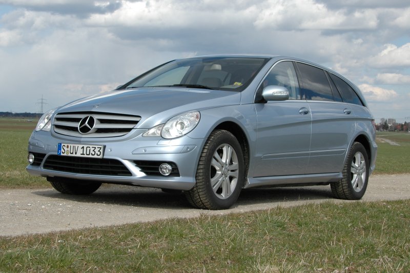 Mercedes R 320 CDI 4matic lang - „R“eise mit Klasse - Seite 214.08.2008 Auch ohne die Extras zu berücksichtigen, ist es schon schwierig genug, das eigene R-Klasse-Modell zu konfigurieren. Seit der Modellpflege im letzten Jahr ist die Mercedes-Reisedampfer-Klasse nämlich nochmals vielseitiger geworden. Die Wahl besteht zwischen Heck- oder Allradantrieb, kombiniert mit insgesamt fünf Motoren, sowie den beiden bereits angesprochenen Karosserielängen, in die wiederum fünf, sechs oder sieben Sitzplätze verbaut werden. Unter der nach vorne relativ steil abfallenden Haube des R 320 CDI nagelt dezent der stärkere der beiden drei Liter großen Common-Rail-Turbodiesel, der bei 3.800 Touren 224 PS an die serienmäßige Siebengang-Automatik liefert. Noch beeindruckender ist der Drehmoment-Höchstwert von 510 Newtonmetern, der zwischen 1.600 und 2.800 Kurbelwellenumdrehungen anliegt. Das reicht für eine entspannte Fahrweise allemal.