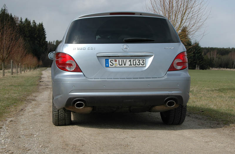 Mercedes R 320 CDI 4matic lang - „R“eise mit Klasse - Seite 414.08.2008 Gar nicht mal schlecht reist man im langen R selbst in der sonst oft so gescholtenen dritten Reihe. Schon der Einstieg gelingt ohne Verrenkungen, da sich die mittleren Sitze dafür einfach umklappen lassen. Dank verstellbarer Lehnen an den beiden Plätzen im Fond findet man hier dann schnell eine vernünftige Sitzposition. Um schließlich auch noch eine entspannte Beinfreiheit zu genießen, müssen nur die Mitreisenden in der zweiten Reihe ihr Sitzmöbel ein wenig nach vorne schieben. Platz genug dafür haben sie ja. Großzügig bemessen ist das Gepäckabteil, das selbst bei Nutzung aller Sitzplätze noch eine Länge von 54 Zentimetern aufweist. Wird die dritte Reihe weg geklappt, wächst das Ladeabteil auf 115 cm – oder nach VDA-Norm: Das Kofferraumvolumen der langen R-Klasse beträgt zwischen 684 und 2.436 Liter. Und wem das immer noch nicht reicht, kann zusätzlich 2,1 Tonnen an den Haken nehmen oder 100 Kilo aufs Dach packen.