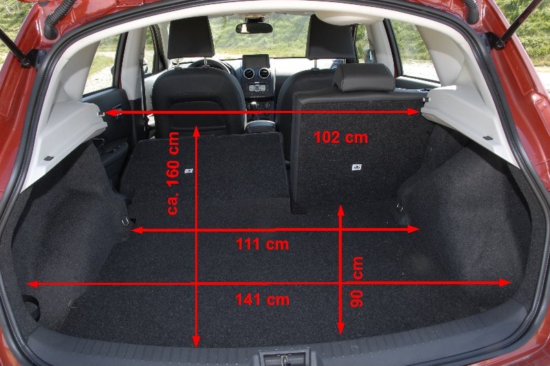 Nissan Qashqai 2.0 4WD – Der Nomade in der Kompaktklasse - Seite 4Den Pkw-Genen in der Qashqai Ahnenreihe entstammt die mit 161 cm für SUV-Verhältnisse relativ niedrige Karosserieform, deren Design an Golf und Co. erinnert. Mit einer Länge von 4,32 Metern trifft er genau ins Segment der kompakten Pkw und bietet eine entsprechende Innenraumgröße. Vier nomadisierndende Erwachsene finden samt dazugehörigen Reiseutensilien ausreichend Platz, wobei das Kofferraumvolumen mit 410 bis 1.513 Liter Fassungsvermögen großzügig ausgefallen ist. Weniger komfortabel: Die Rücksitzbank ist weder in der Länge verschiebbar, noch lässt sich ihre Lehne in der Neigung verstellen. Zur Vergößerung des Kofferraumvolumens können zwar die beiden Hälften der Lehne umgeklappt werden, nicht aber die Sitzbank. Mit dem Effekt, dass der maximal rund 1,6 Meter lange Laderaumboden zwar bis zu den Vordersitzlehnen reicht, aber keine völlig ebene Fläche ergibt.