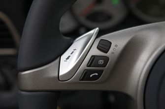 Porsche Carrera 4 / 4S – Ein Biss(-chen) mehrWer gerne ausschließlich selbst schalten mag, darf sich die 3.510,50 Euro für das 7-Gang-Doppelkupplungsgetriebe sparen. Sowohl sub- wie auch objektiv spart er aber dann am viel zitierten falschen Ende: Denn das PDK kann erstens schneller – weil ohne Zugkraftunterbrechung – schalten Und macht zweitens – dank Drucktasten-Selektion – beim engagierten Boxer-Pferde-Treiben einfach mehr Spaß. Lassen wir die 0,2 bis 0,4 Sekunden, die man damit gegenüber dem manuellen 6-Gang-Menü zügiger auf Tempo 100 ist, mal außen vor: Es ist schlichtweg angenehm, sich im schnell durcheilten Geläuf mit dem linken Fuß abstützen und dennoch fleißig im Gängemenü quirlen zu dürfen. Und wer sich die Zeit gerne öfter mal auf einer Rundstrecke vertreibt, wird die „Sport Plus“-Taste mit der impliziten „Launch Control“ (Aufpreis 1.094,80) schätzen lernen: Bremse treten, Gaspedal kurz und heftig durchtreten um die Ausgangsdrehzahl von 6.500 U/min einzuloggen, Bremse loslassen und mit einem perfekten Rennstart davonschießen. Mit dem Carrera 4S Coupé hat man die 100er-Marke damit nach schlappen 4,3 Sekunden passiert, was ja durchaus ein breites Lächeln auf die Lippen zaubern kann...