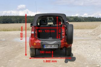 Leiterrahmen, Stahl-Karosserie, 2 Türen, seitlich angeschlagene Heckklappe, 4 Sitzplätze |