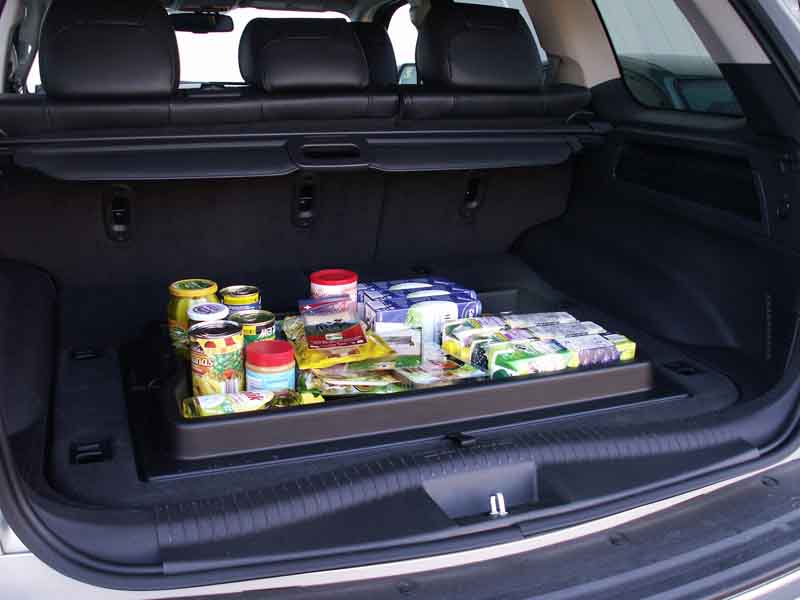 Als Familienfreund sollte sich der große Cherokee in Sachen Ladevolumen erweisen: Nominell passen 978 Liter hinter die voll besetzte Rückbank. Doch die ebene Fläche des Gepäckraums ist nur über eine hohe Kante zu erreichen und das angeschrägte Heck stemmt sich gegen sperriges Urlaubsequipment. Als pfiffige Ideen goutieren wir jedoch die separat öffnende Scheibe in der Klappe sowie vor allem den Einlegeboden mit einer Wanne in der Unterseite: In die lässt sich der Einkauf rutschsicher verstauen, wenn man mal eben weder Einkaufskorb noch -tasche parat hat. Schade nur, dass der Grand Cherokee eine vergleichsweise mittlere