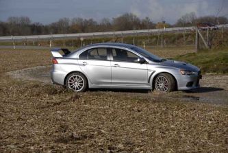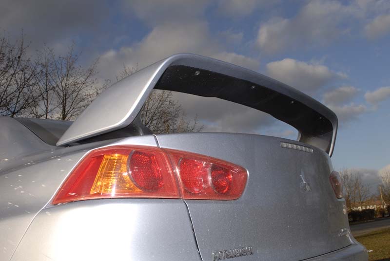 Mitsubishi Lancer Evo – Lass die Gerade Kurve sein! - Seite 5Das System arbeitet so präzise und schnell, dass sich der Evo nur durch gröbste Lastwechselprovokation auf schotterigem Untergrund zum Drift überreden lässt. Dank der sportlichen Sitzposition in den serienmäßigen Recaro-Möbeln mit überzeugendem Seitenhalt und passender Lenkradhaltung hat man ihn dabei aber jederzeit kontrolliert im Griff. Ein sensibles Popometer und eine Portion Fahrtalent vorausgesetzt... Auf trockenem Asphalt rutscht dieses Rallye-Basismodell im Extremfall mit leichtem Powerslide über alle Viere Richtung Kurvenausgang. Im Normaltempo – das wir im Alltagsverkehr jedem ans Herz legen – zieht der Mitsubishi seine Spur wie auf Schienen. Wer moderat unterwegs ist, darf sich dennoch der Aufmerksamkeit seiner Umwelt „erfreuen“: Mit der aggressiven Spoileroptik – Schaufel vorne, „Biertheke“ hinten und Diffusor am Heck – zieht die zehnte Evolutionsstufe des Mitsubishi Lancer die Blicke der Passanten auf sich. Ob man will oder nicht: Da fühlt sich auch Otto Normalfahrer fast wie ein prominenter Rallyefahrer. Klappe.
