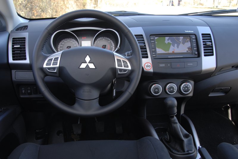 Mitsubishi Outlander 2.0 DI-D – Innere Werte / Seite 4Darüber hinaus kann der Fahrer über den Allrad-Drehschalter auf der Mittelkonsole auf reinen Frontantrieb umschalten oder die Kraftverteilung in Richtung Hinterräder verlagern: In diesem „4WD-Lock“-Modus wird der Drehmoment-Anteil der Hinterachse um den Faktor 1,5 gegenüber der „4WD-Auto“-Stellung erhöht. Dies entspricht zwar in der Wirkung nicht ganz der einer manuellen Sperrung des Längsausgleiches – erlaubt es aber, dass die Stabilitätskontrolle auch bei „4WD-Lock“ ihre Arbeit unbeeinträchtigt verrichten kann. Und das macht Sinn, schließlich ist der Outlander kein Offroader, dagegen spricht seine geringe Bodenfreiheit von 18 cm genau so wie das Fehlen einer kurzen Geländeuntersetzung. Im Straßenbetrieb sorgt die frontlastige Verteilung der Antriebskraft für ein sicher-untersteuerndes Kurvenverhalten, ehe die serienmäßige Stabilitätskontrolle im Grenzbereich regelnd eingreift. Aber eine solch brüske Fahrweise dürfte den meisten Eignern ohnehin fremd sein. Wer sich für den Outlander entscheidet, schätzt andere Eigenschaften an seinem Auto. Zum Beispiel eine problemlose Bedienung, jede Menge Ablagen oder ein großzügiges Platzangebot – und das bietet dieser Mitsubishi nun wirklich: Nicht nur vorne fährt man kommod, auch auf der Rückbank lässt es sich bequem reisen – zumindest in der besseren der beiden lieferbaren Ausstattungsversionen „Invite“. Hier lässt sich nämlich, und im Gegensatz zur Basisversion „Inform“, das rückwärtige Gestühl um acht Zentimeter in der Länge verstellen.