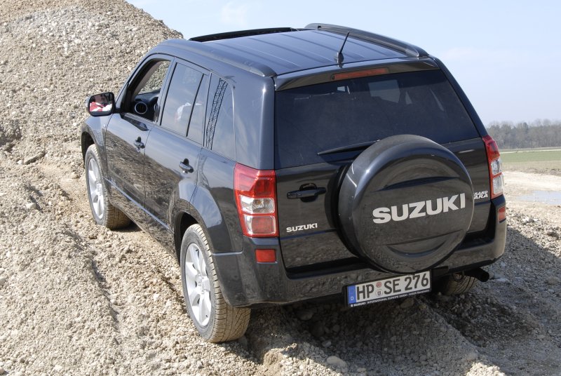 Suzuki Grand Vitara 3.2 – Starkes Jubiläumsmodell / Seite 3Einen etwas zwiespältigen Eindruck hinterlässt das mit dem V6 zwangsgekoppelte Fünf-Stufen-Automatikgetriebe ohne manuelle Schaltgasse. Im Normalfall erledigt es seine Aufgaben unauffällig. Die Gangwechsel erfolgen weich und ohne große Schaltrucke. Leistungsanforderungen des Fahrers erledigt der Automat mit der gebotenen Spontaneität. Nur die Gangwahl ist nicht immer nachvollziehbar. Einen Kickdown-Befehl bei Tacho 140 quittiert das Getriebe gelegentlich mit einem Herunterschalten in die vierte Übersetzungsstufe, ein andermal krallt sie sich den dritten Gang. Wer sich also beispielsweise beim Überholen darauf verlässt, dass das Getriebe automatisch für schellstmöglichen Geschwindigkeitszuwachs sorgt, erlebt so manche Schrecksekunde. Da macht es durchaus Sinn, in solchen Situationen vorsorglich selbst die Gangwahl zu übernehmen – nur den „Power“-Schalter für die Getriebesteuerung auf der Mittelkonsole zu aktivieren bringt nämlich auch nicht verlässlich den gewünschten Effekt. Gleichzeitig ist auch der stärkste Grand Vitara ein vollwertiger Offroader geblieben. Mit seinem manuell sperrbarem Zentraldifferenzial und einem Reduktionsgetriebe ist er mit klassischer Geländewagen-Technik bestückt. Zusätzlich hat Suzuki seinem Jubiläumsmodell noch einen Berganfahrassistenten sowie eine Bergabfahrhilfe spendiert. Ersterer verhindert ein Zurückrollen beim Losfahren am Berg, zweitere hält die Geschwindigkeit auf Knopfdruck im steilen Gefälle konstant, ohne weiteres Zutun des Fahrers. Der Grand Vitara rollt nun mit zehn Stundenkilometern bergab, bei eingelegter Untersetzung mit nur fünf km/h.