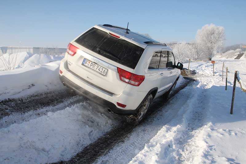 Jeep Grand Cherokee IV – Generationswechsel mit dem „Leuchtturmprojekt“ / Seite 2Bei der Aktivierung der „Sand/Mud“-Einstellung hebt „Quadra-Lift“ das Chassis um 65 Millimeter – was in einer Bodenfreiheit von maximal 27 Zentimeter resultiert – und trimmt das Zusammenspiel der Systeme auf eine sensible Radschlupf-Begrenzung (über gezielten Bremseingriff) sowie eine traktionsoptimale Kraftverteilung zwischen den Achsen und Rädern. Der „Rock“-Modus ist für den groben Geländeeinsatz in Kombination mit der Untersetzung gedacht, er koordiniert die Zusammenarbeit zwischen dem Verteilergetriebe mit der integrierten elektronisch angesteuerten Lamellenkupplung, den elektronischen Lamellenbremsen der Vorder- und Hinterachsdifferenziale sowie der Drosselklappe. Nanu: Hat da gerade jemand was von einer Jeep-Adaption des Land Rover-Terrain-Response-Systems gesagt? Jedenfalls funktioniert das Zusammenspiel dieser und weiterer, bekannter Systeme – wie beispielsweise die Bergabfahr- und Berganfahr-Hilfe (HDC bzw. HSA) – im neuen Jeep Cherokee hervorragend, wie wir bei einem Schnupperausflug in einem nett abgesteckten Geläuf mit Schräg- und Wasserdurchfahrt sowie sanften Auf- und Abfahr-Kuppen feststellen konnten. Der überarbeitete, durch eine variable Ventilsteuerung ergänzte und mittlerweile 259 kW/352 PS starke 5.7-l HEMI V8 gefällt einmal mehr durch seine sanfte, aber dank 520 Newtonmeter Drehmoment nachdrückliche Kraftentfaltung. Einen positiven Eindruck in der Verwindungsstrecke macht die neue Karosserie-Konstruktion, die auf dem Chassis der Mercedes M-Klasse baut – ein Gen, dass das neue Fiat-Jeep-SUV aus der Daimler-Chrysler-Ära in die italienisch amerikanische Ehe mit eingebracht hat. Über 5.400 Schweißpunkte sorgen dafür, dass sich das selbsttragende Blechkleid um 146 Prozent verwindungssteifer gibt als jenes der vorherigen Grand Cherokee-Generation. Auch die neue Hinterachse punktet im unwegsamen Terrain: Erstmals im Grand Cherokee kommt hier eine Einzelradaufhängung mit Quer- und Längslenkern zum Einsatz, die sich mit präziser Führung und komfortabler Feder-/Dämpferarbeit profiliert. Gleiches gilt beim forcierten Einsatz auf der Straße, die wir mit dem brandneu entwickelten 3.6-l Pentastar V6-Benziner unter die Räder nehmen durften. Die nominelle Leistung des Vierventilers mutet mit 210 kW/286 PS bei 6.350 Umdrehungen gegenüber den rund 2,3 Tonnen Leergewicht des Grand Cherokee IV als wenig spritz-, sondern vielmehr spritfreudig an. Doch siehe da: Der beherzte Tritt aufs rechte Pedal sorgt für zweierlei Überraschungen. Zum einen generiert das kleine, für den europäischen Markt prädestinierte Aggregat einen ausreichend kräftigen Vortrieb auch bei spontanen Überholmanövern und lässt in seiner geschmeidigen Leistungsentfaltung die Werksangabe von knapp über neun Sekunden für den Sprint auf Tempo 100 glaubhaft erscheinen. Zum anderen konsumierte es auf dem Mixtrip über bayrische Landstraßen und Autobahnen laut Bordcomputer mit 12,1 Liter Super lediglich 0,7 Liter mehr Durchschnittsverbrauch als im Werkslabor ermittelt. Eine sechste Stufe im Automatikgetriebe käme gelegen, den Konsum auf der Autobahn ebenso um einen weiteren Tick zu minimieren wie den Geräuschpegel. Der sich in der neuen Karosse allerdings eh' in angenehmen Grenzen hält.