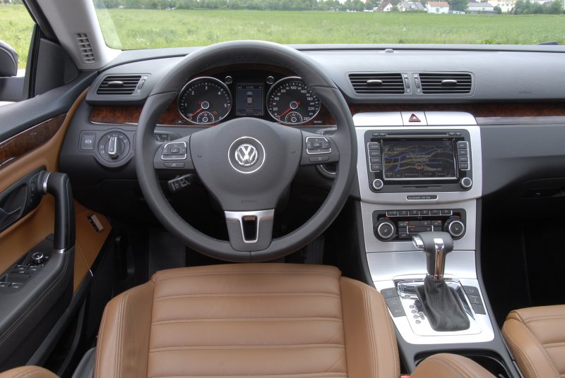 VW Passat CC TDI (125 kW) 4motion DSG – Der Schönling aus dem Norden / Seite 2Das war's aber dann auch schon mit den Coupé-typischen Nachteilen. Fahrer & Co lassen sich auf bequemen Sportsitzen nieder, die effektiven Seitenhalt vermitteln. Der Blick schweift über eine Armaturenlandschaft, die von Holz- und Alueinlagen geprägt ist. Das abgesteppte Leder der Sitzflächen trägt zusätzlich dazu bei, dass Oberklassen-Ambiente im Passat CC aufkommt. Weniger standesgemäß: Die Neigung des Fahrersitzes lässt sich in dessen manueller Ausführung nicht verstellten – dafür bedarf es schon der optionalen elektrischen Sitzverstellung für gut tausend Euro. Weil wir gerade bei den Euros sind: Der VW Passat CC TDI (125 kW) 4motion DSG steht für 37.050 Euro in der Preisliste. Mit all den Extras, die im Testwagen verbaut worden sind, addiert sich dessen Listenpreis jedoch auf 54.565 Euro. Dafür erhält der Kunde dann aber nicht nur die hinlänglich bekannten Luxus-Extras, sondern auch ein Technikpaket der Sonderklasse. Unter anderem wartet der Testwagen mit einer automatischen Distanzregelung (ACC) und dem Spurhalteassistenten „Lane Assist“ auf.