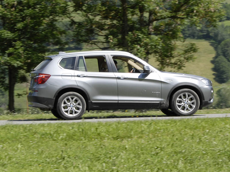 BMW X3 xDrive 20d – Gewachsener Bayer / Seite 3Und gegen sportliche Fahreinlagen hat auch der zwei Liter große Common-Rail-Diesel nichts einzuwenden: Ab rund 1.500 Kurbelwellenumdrehungen erwacht der Vierzylinder zum Leben, wird bis 2.000 Touren dann immer präsenter, um schließlich bis knapp an die 5.000er-Markierung hochzudrehen. Mit seinem breiten nutzbaren Drehzahlband sowie dem sanft aber verzögerungsfrei einsetzendem Turboschub und der hohen Laufkultur ist schon das (derzeit) kleinste Triebwerk im X3-Programm eine ausgewogen-harmonische Motorisierung. In Kombination mit dem knackig zu schaltenden und optimal auf die Motorcharakteristik abgestimmten Sechsgang-Getriebe (eine Achtstufen-Automatik gibt es gegen Aufpreis) lassen sich beeindruckende Fahrleistungen erzielen. So beschleunigen die 184 Diesel-PS (135 kW) den X3 20d in neun Sekunden auf Tempo hundert, und mit seinen 380 Newtonmetern Drehmoment überwindet das Bayern-SUV den Zwischenspurt von 80 auf 120 km/h in gut zwölf Sekunden (im 6. Gang). Einziger „Spielverderber“ ist die unten im Drehzahlmesser integrierte Schaltanzeige, die den Fahrer dazu anhält, den X3 im Drehzahlbereich zwischen 1.500 und 2.000 Touren zu bewegen. Wer sich stoisch daran hält, erlebt nicht viel vom wahren Potenzial des 20d-Triebwerks, dafür aber sein nächstes Aha-Erlebnis an der Tankstelle: Verbrauchswerte um die sieben Liter pro 100 km lassen sich dann erzielen. Doch auch der realistischere Testverbrauch von knapp 7,5 l Diesel ist ein hervorragender Wert.