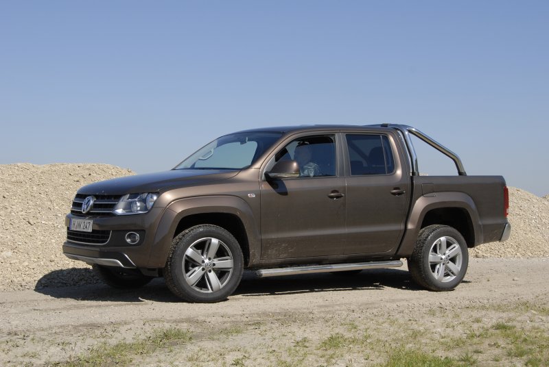 VW Amarok Double Cab 2.0 BiTDI 4motion – Das soll ein Kleinlaster sein? / Seite 4Im Innenraum des Amarok-Doppelkabiners herrschen Platzverhältnisse und ein Ambiente auf dem Niveau eines ausgewachsenen SUV – zumindest in Verbindung mit dem Highline-Ausstattungspaket des Testwagens. Die Basisversion glänzt dagegen mit der Abwesenheit jeglicher Komfortausstattung. Ungeachtet dessen bieten alle Amarok-Versionen ihren Passagieren jede Menge Platz und ein ebenso großzügig bemessenes Gestühl. Nicht minder erfreulich ist die Vielzahl an wirklich großen und damit auch vernünftig nutzbaren Ablagen in den Türen, auf der Mittelkonsole und selbst oben auf dem Armaturenbrett. Liebe zum Detail und einen Sinn fürs Praktische hat Volkswagen Nutzfahrzeuge bei der Entwicklung des Zubehörprogrammes für den Amarok gezeigt – finden sich dort doch so genial einfache und praktische Optionen, wie eine 12-Volt-Steckdose auf der Oberseite des Armaturenbretts (beispielsweise zur Stromversorgung eines externen Navis, ohne Kabel-Wirrwarr) oder eine Ladeflächenbeleuchtung hinten am Dach des Fahrerhauses. Zur Verbesserung der Geländeeigenschaften hat VWN verschiedene Offroadpakete (inklusive 16-Zoll AT-Bereifung und Unterfahrschutz) sowie eine manuelle Differenzialsperre für die Hinterachse im Programm. Damit lassen sich die bereits in der Serienversion guten Geländegene des Amarok mit Permanent-Allrad (Bodenfreiheit 26,5 Zentimeter, Wattiefe 50 cm) weiter verbessern. Und für alle, die mehr Offroad-Power brauchen, gibt es ja schließlich auch noch den Heavy-Duty-Amarok mit zuschaltbarem Allradantrieb und Geländeuntersetzung zum gleichen Preis.
