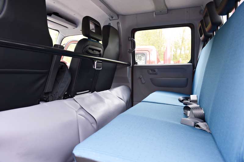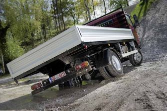 Fuso Canter 4x4 – Leichte Geländearbeit / Seite 3Ein „Mangel“, wenn man das so nennen will, den der durchzugsstarke Turbodiesel wieder wettmacht. Mit seiner souveränen und recht kontinuierlichen Kraftentfaltung lässt er unseren Pritschen-Lkw mit dem Huckepack-Ballast lässig durch mittlere Verschränkungspassagen und seichte Wasserdurchfahrten schraddeln – nachdem er das 30-Prozent-Gefälle mit der 50 kW-Abgasbremse gemeistert hat. Kleine steile Hügelüberfahrten nimmt der Fuso Canter 4x4 mit seinen Böschungswinkeln von 35 Grad vorne und 25 Grad hinten sowie einem Rampenwinkel von 25 Grad trotz des vergleichsweise langen Radstandes von über 3,40 Meter ohne Aufsetzer – ein gutes Augenmaß des Fahrers vorausgesetzt. Der sitzt in einem schlicht, aber funktionell arrangierten Cockpit, freut sich über übersichtliche und leicht händelbare Bedienschalter sowie eine gute Rundumsicht. Ärgert sich allerdings über eine etwas hakelig geführte Joystick-Kulisse des Fuso-hauseigenen Getriebes, in der sich der Hebel vor allem beim Zurückschalten mitunter störrisch gibt. Preiswertigkeit scheint auch bei der Wahl des Auskleidungsmaterials im Fahrerhaus – das es wahlweise als dreiplätzige Einzel- oder als siebensitzige Doppelkabine gibt – im Lastenheft gestanden zu haben: Ob Boden und Polster beispielsweise den rauen Umgangston von Bauarbeitern auf Dauer überleben, wird die Praxis zeigen. Starke Argumente für den nützlichen Allrad-Laster sind aber auf jeden Fall seine handlichen Abmessungen – er bewältigt mit knapp über zwei Metern Breite auch enge Passagen – sowie die umweltfreundliche Technik des Diesel-Aggregates, das mit einer bereits von Daimler-Lkw bekannten AdBlue-Einspritzung sowie der SCR-Abgasreinigung, einer gekühlten Abgasrückführung und einem Keramik-Partikelfilter die Euro 5-/EEV-Norm erfüllt. Optional ist zudem eine Start-/Stopp-Funktion erhältlich. Und auch der Basispreis ist verlockend: Für 41.700 Euro brutto bekommt man einen funktional ausgestatteten Canter 4x4 mit Einzelkabine und kurzem Radstand, der Doppelkabiner steht mit 45.700 Euro in der Liste.