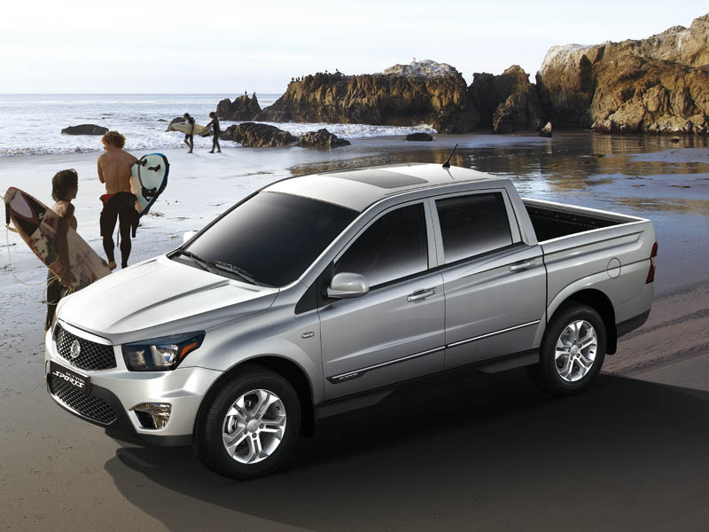 SsangYong Actyon Sports 4x4 – Freizeitauto für Geländefahrer / Seite 2Gut zur angepeilten Zielgruppe passt auch das im Testwagen verbaute Quartz-Ausstattungspaket, das als durchaus komplett durchgehen kann. Es umfasst unter anderem ein Radio inklusive Lenkrad-Fernbedienung und Bluetooth-Schnittstelle, Alufelgen sowie Lederlenkrad – und das zum attraktiven Komplettpreis von 25.990 Euro. Wer drei Tausender sparen will, kann auf die Crystal genannte Basisversion zurückgreifen, die allerdings ohne ESP auskommen muss, für 19.990 ist diese auch ohne Allradantrieb lieferbar. Egal welche Version, der Actyon Sports wird stets von einem zwei Liter großen Common-Rail-Diesel angetrieben, der eine Höchstleistung von 114 kW/155 PS bei 4.000 Touren und ein maximales Drehmoment von 360 Nm zwischen 1.500 und 2.800 U/min entwickelt. Der Motor ist mit einem Sechsgang-Schaltgetriebe kombiniert, für 2.000 Euro Aufpreis ist auch eine Sechstufen-Automatik lieferbar. Der Vierzylinder gefällt mit seiner Laufruhe und einer gleichmäßigen Kraftentfaltung. Er baut bereits zwischen 1.500 und 2.000 Umdrehungen Kraft auf und dreht dann zügig bis rund 4.000 Touren hoch, darüber beginnt sein Elan zu erschlaffen. So schwingt sich der Korea-Pickup in knapp 13 Sekunden auf Tempo hundert und erreicht eine Höchstgeschwindigkeit von gut hundertsiebzig.