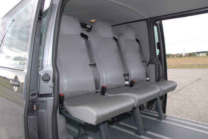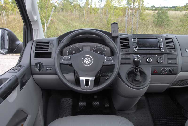 VW T5 Rockton Expedition 2.0 TDI – Der Bulli fürs Grobe / Seite 2Immerhin darf er ja 2.500 Kilogramm an den Haken nehmen. Die er locker wegzieht, nicht nur dank des besagten Spezialgetriebes. Sondern auch dank des mit 340 Newtonmeter durchaus kräftelnden Vierzylinder-Diesels, dessen zwei Liter Hubraum nur auf den ersten Blick Zweifel an der Durchsetzungsfähigkeit aufkommen lassen. Klar, dass es der stärkere 132 kW/180 PS Biturbo mit DSG etwas besser könnte und sich vielleicht beim Anhängerschleppen ein Pimperl weniger ins Zeug legen müsste. Aber da er in der Konstellation mit dem Antriebskonzept und der Bereifung des Rockton Expedition nicht die Euro 5-erforderlichen Abgaswerte bringt, muss man nun mal mit der einfachen 103 kW/140 PS-Turbo-Version des Common-Rail-Diesel leben. Und man lebt nicht schlecht damit, sowohl was die Leistungsentfaltung als auch den Verbrauch angeht, der sich im Schnitt auf 9,6 Liter einpendelte. Jetzt aber mal rein in medias res, sprich: Hinter das Lenkrad des in dezentem Felsgrau, einem Rock-Ton wenn man die Namensgebung wortspielerisch aufnehmen mag, lackierten Autos. Dort lümmeln wir uns in Schalensitze, die mit einem weitestgehend schmutzunempfindlichen, abwaschbaren Polster bezogen sind. Davon gibt's zudem serienmäßig zwei im Laderaum, üblicherweise links und rechts an den Schiebetüren installiert. Wer sich den Durchblick via Rückspiegel auf das Heckfenster zugunsten eines weiteren Fondplatzes verbauen möchte, kann einen Zusatzsitz ordern. Oder auch mehrere, zulassungstechnisch sind hier maximal sieben Plätze möglich. Klar, lassen sich diese hinteren Sitze zwecks der Ladevariabilität verschieben oder gar demontieren. Was allerdings Werkzeug (zumindest einen Schraubenschlüssell) und etwas handwerkliches Geschick erfordert, da jeder dieser mit integrierten Dreipunktgurten ausgerüsteten Sessel aus Stabilitäts- und Sicherheitsgründen mit insgesamt zwölf Schrauben in den Schienen fixiert ist.