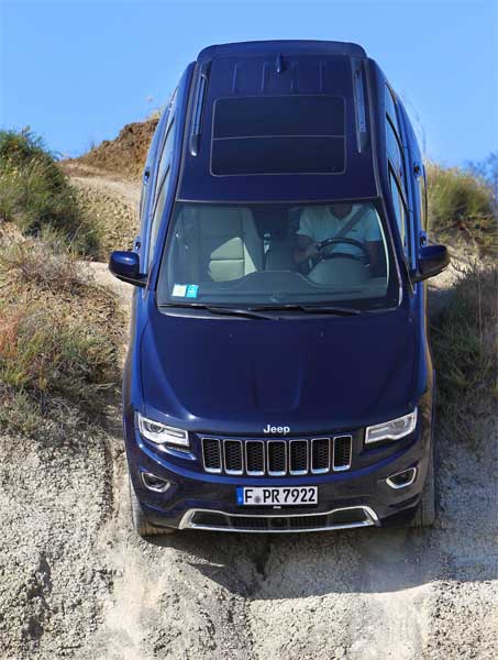 Jeep Grand Cherokee 2014 - Spürbare Leistungsspritze für den Diesel / Seite 2Zurück zum charakterlich überzeugendsten der vier Aggregate in der Modellpalette: Der in bester Fiat-Tradition „Multijet“ genannte Selbstzünder gefällt mit seiner dezenten Akustik und einem sanft-nachdrücklichen Durchzugscharakter, der ihm auch beim Ausflug ins Gelände gut ansteht. Hier harmoniert das V6-Triebwerk ebenso gut mit der neuen Achtstufen-Automatik wie auf der Straße: Die neue Getriebezutat stammt von der Zahnradfabrik Friedrichshafen (ZF), ersetzt die fünfstufige Box aus der ehemaligen Mercedes-Liaison und gefällt durch ihre ruckfreien Schaltübergänge sowie eine effiziente Spreizung: Mit einem ersten Gang, dessen Kürze in Kombination mit der Untersetzung für Bergauf- und Bergab-Kletterspaß sorgt. Und einem achten Gang, dessen Länge die Drehzahl auf der Autobahn und – in Kombination mit einem eco-Modus – den Verbrauch senkt. Jeep gibt einen Mix von 7,5 Liter auf 100 Kilometer an. Der Schadstoffausstoß soll bei 198 g/km liegen. Werte, die auch für die auf 190 PS Leistung beschränkte Motorversion in der Basisausstattung Laredo gelten. Die Zahnradpaarungen lassen sich wie gewohnt auch manuell per Schaltwippen hinter dem Lenkrad einlegen. Ob automatisch oder manuell: Die Zugkraftunterbrechung ist gering, sprich: die Drehzahlanschlüsse passen. Und so macht der gekräftigte V6-Diesel auch im wuseligen Asphaltgeläuf richtig Spaß. Dazu passt das knackig abgestimmte Fahrwerk. Vor allem, wenn die ab dem mittleren Ausstattungspaket Overland serienmäßige adaptive, fünffach höhenverstellbare Luftfederung mit an Bord ist. Die senkt den rund 1,80 Meter hohen Aufbau im Sportmodus Luftwiderstands-senkend ab und verhärtet die Dämpfung. Biegt man in den groben Waldweg ab, lässt sich die Bodenfreiheit per Knopfdruck auf 28 Zentimeter erhöhen. Für Offroad-Ausflüge stehen nach wie vor der Quadra-Trac II Allradantrieb in der Basisausstattung sowie das Quadra-Drive II 4x4-System mit elektronisch geregelter Hinterachssperre ab der Overland-Ausstattung zur Wahl. Beiden ist das Selec-Terrain genannte Geländeprogramm mit vier manuellen Einstellmodi für verschiedenartige Untergründe gemeinsam. Beim Sportmodell SRT kommt dagegen der rein straßenorientierte Quadra-Trac Active-on-Demand-4x4-Antrieb zum Einsatz.