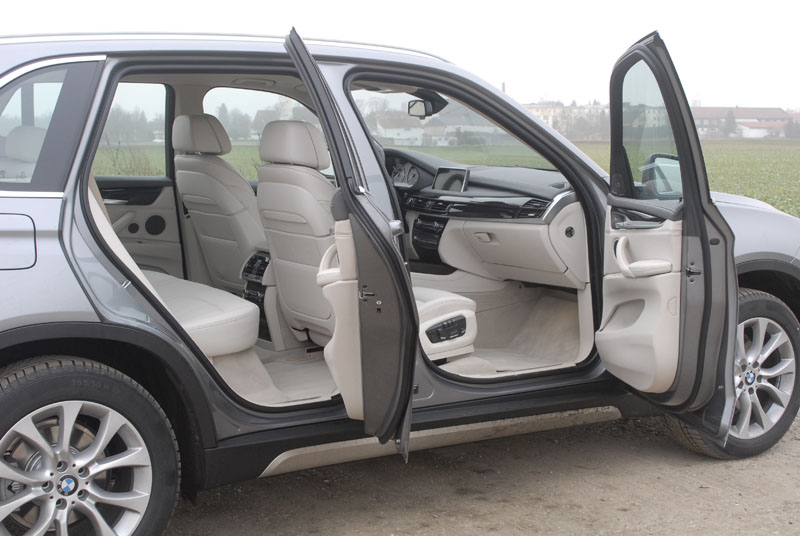 BMW X5 xDrive 30d – Neuauflage des Technikfreaks / Seite 4Der Innenraum der neuen Modellgeneration präsentiert sich aufgefrischt, speziell das Cockpit wirkt nun moderner. Wichtiger aber: Laderaum und Variabilität wurden verbessert. Die Rückenlehne der zweiten Sitzreihe kann jetzt im Verhältnis 40 : 20 : 40 dreigeteilt umgeklappt werden. Das Gepäckraumvolumen lässt sich dadurch schrittweise von 650 auf bis zu 1.870 Liter erweitern. Der Stauraum fällt damit um 30 beziehungsweise 120 Liter größer aus als beim Vorgängermodell. Schade nur, dass die Rücksitzbank serienmäßig weder in Längsrichtung verschiebbar, noch ihre Lehne in der Neigung verstellbar ist. Diese beiden Optionen bieten erst die 500 Euro teuren „Komfortsitze“, die auch Bestandteil des 7-Sitzer-Paketes sind. In diesem Falle finden zusätzlich zwei Jugendliche in der dritten Reihe Platz – sie sollten jedoch nicht größer als 1,50 Meter sein, schränkt selbst BMW ein. Für 59.400 Euro steht der X5 30d in der Preisliste, und kostet damit 500 Euro weniger als der 306 PS (225 kW) starke X5 35i Benziner. Das Einstiegsmodell der neuen X5-Allrad-Baureihe ist der 25d mit einem Vierzylinder-Diesel und 218 PS (160 kW), der einen Basispreis von 54.700 hat – bei Verzicht auf den Allradantrieb lassen sich bei dieser Modellversion nochmals 2.600 Euro sparen. Allen X5 gemeinsam ist, dass sie zwar bereits in der Basisversion gut ausgestattet sind, mit den in dieser Fahrzeugklasse gern georderten Extras lässt sich der tatsächliche Fahrzeugpreis jedoch lustvoll in noch höhere Sphären treiben.