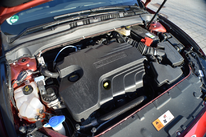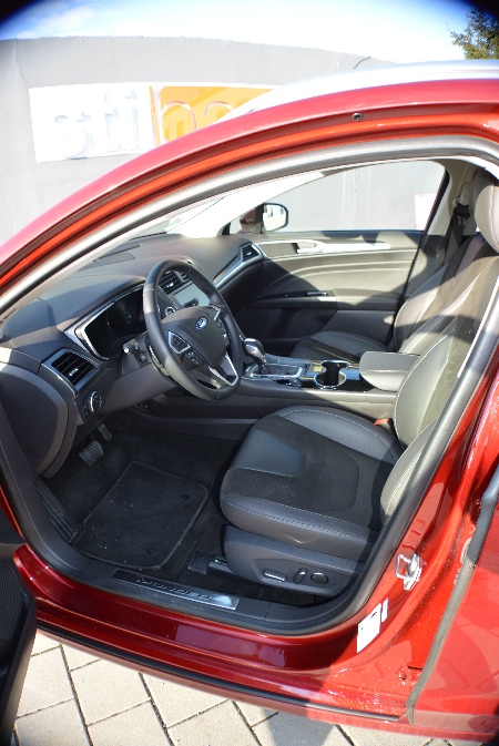Zweite Antwort: Dieser Mondeo 2.0 TDCi 180 PS PowerShift AWD bietet reichlich Leistungs- und Antriebsgegenwert. Die vier Zylinder des Dieselaggregates verrichten ihre Arbeit mit unaufdringlicher Akustik und bewegen sich leichtfüßig mit spontanem Ansprechverhalten: Da packen maximal 400 Newtonmeter im Bereich zwischen 2.000 und 2.500 U/min kräftig vorwärtstreibend an. Dazu passt die je nach Fahrmodus lässig bis sportliche Schaltcharakteristik der 6-Gang-Automatik. Notabene: Das „PowerShift“-Konstrukt ist ein Direktschaltgetriebe, dessen Übersetzungen sich nach Bedarf manuell wechseln lassen. In der Stufe „D“ lehnt sich der Fahrer zurück, lässt die rechte Hand am Lenkrad und die Elektronik schalten – für gelassenes Cruisen in der Stadt und auf der Landstraße oder der Autobahn. Dürstet es ihn nach sportlicher Gangart, postioniert er den Wählhebel auf „S“ und arbeitet mit den relativ gut greifbaren Schaltpads am Volant.