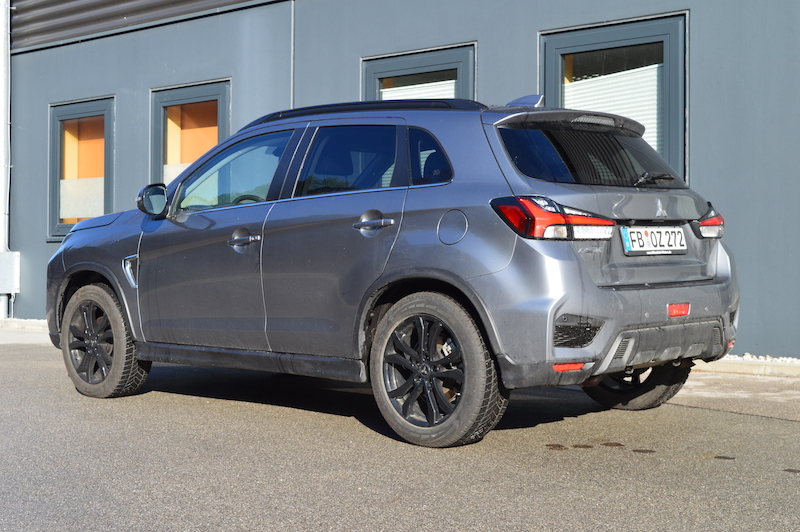 Mitsubishi ASX 2.0 4WD CVT – Allrad-Cruiser mit Ahnen-Kanten / Seite 4Im Straßenverkehr wie abseits davon. Nicht nur, aber vor allem dort, wo der Asphalt endet, entfaltet das Allradsystem seine effiziente Wirkung: Diese ordert man per Knopfdruck in der Mittelkonsole, sprich: damit wird die elektronische Lamellenkupplung an der Hinterachse aktiviert, die das Drehmoment je nach Radschlupf variabel zwischen den Achsen verteilt. Wird's traktionstechnisch kritisch, geht man in den 4WD Lock-Modus. Damit wird der Hinterachse das 1,5-fache Drehmoment weitergereicht, was der Bewältigung aller Standardübungen im natürlichen Geläuf dienlich ist: Der ASX fährt gemütlich bergauf, bergab, schräg und über Fugen. Da sind sie also doch noch präsent, die Gene eines kantigen Mitsubishi-Geländewagens. Technische Daten: Motor: