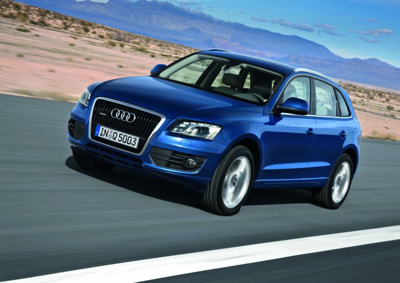 Audi Q5 – Der Neue in der SUV-Mittelklasse - Seite 2Während der 2.0 TDI seine Kräfte über ein Sechsgang-Schaltgetriebe und dem permanenten Allradantrieb quattro an alle vier Räder leitet, setzt Audi beim 3.0 TDI und beim 2.0 TFSI ein neues Doppelkupplungsgetriebe mit sieben Gängen ein. Der Fahrer kann die Siebengang S tronic entweder vollautomatisch schalten lassen oder selbst steuern, auf Wunsch mit Wippen am Lenkrad. Das Verteilergetriebe des quattro-Antriebssystems im Q5 schickt die Motorkräfte im Normalbetrieb im Verhältnis 40 : 60 an die Vorder- und Hinterachse – bei Bedarf kann der quattro-Strang aber auch bis zu 65 Prozent der Momente nach vorn und bis zu 85 Prozent nach hinten leiten. Die serienmäßige Bergabfahrhilfe macht steile Abfahrten sicherer,das Stabilisierungssystem ESP und seine Unterfunktion ABS bringen spezielle Kennfelder für den Offroad-Betrieb mit. Im Gelände liegt der Schwerpunkt des ESP auf maximaler Traktion; das ABS erkennt selbsttätig die Beschaffenheit des Bodens und wählt für Sand, Schotter oder Geröll die ideale Regelstrategie. Für die Steigfähigkeit des Q5 nennt Audi 31 Grad, der vordere Böschungswinkel beträgt 25 Grad und der Rampenwinkel 17,5 Grad. Die Bodenfreiheit liegt bei 20 Zentimetern, bei einer Wasserdurchfahrt ist ein halber Meter Tiefe erlaubt.