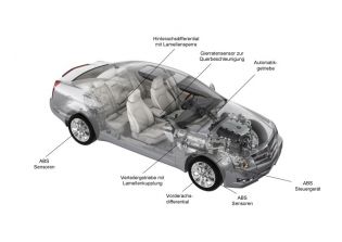 gesteuerte Lamellenkupplung leitet. Diese verteilt das Drehmoment im