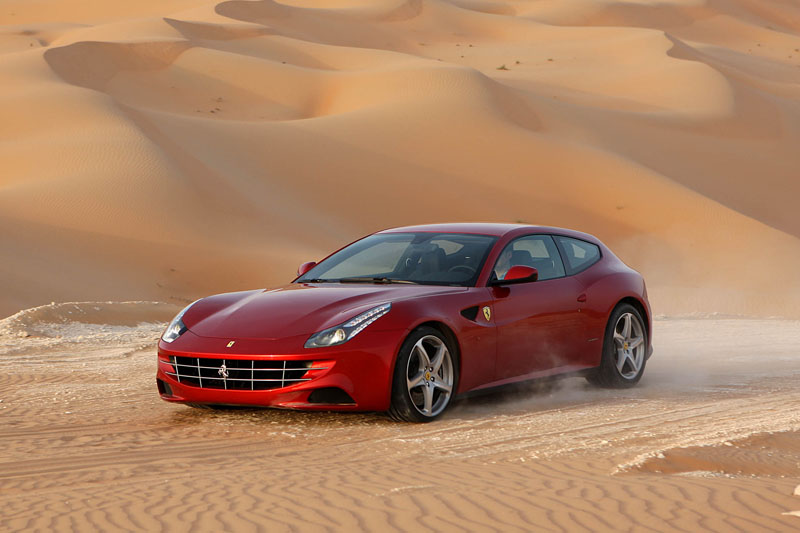 Ferrari FF – Allrad aus Maranello / Seite 2Ein außergewöhnlich sportliches Handling soll durch die Transaxle-Bauseise des FF gewährleistet werden: Beim FF ist der Front-Mittelmotor mit einem Getriebe im Heck kombiniert, was zu einer Gewichtsverteilung von 53 Prozent auf der Hinterachse führt. Aufmerksamkeit widmeten die Italiener auch der Verringerung des Gewichts bei Triebwerk (neuer Guss) und Karosserie (neue Aluminiumlegierungen). Alles zusammen führt beim FF zu einem Leistungsgewicht von gerade einmal 2,7 Kilo pro PS. Im Innenraum des FF kommen ebenfalls Leichtbaumaterialien zum Einsatz – unter anderem wird in den Sitzen Magnesium verwendet. Zusätzlich zu den vier Passagieren kann der Ferrari auch noch 450 Liter Gepäck transportieren – für problemloses Beladen sorgt eine Heckklappe, für Variabilität die einzeln umklappbaren Rücksitzlehnen, die eine Erweiterung des Kofferraums auf bis zu 800 Liter Fassungsvermögen erlauben. Über Preisvorstellungen und Verfügbarkeit des neuen FF informiert Sie gerne Ihr nächster Ferrari-Händler. Technische Daten des Ferrari FF als pdf