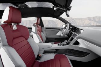 VW Cross Coupé – SUV-Studie mit Allrad- und Hybridantrieb / Seite 2Ein Novum für Volkswagen stellt der Allradantrieb mit einer „elektrischen Kardanwelle“ dar: Die Hinterachse wird dabei vom hinteren der beiden Elektromotoren angetrieben. Für dessen Energieversorgung ist in diesem Fall der vordere Elektromotor zuständig, der jetzt als ein vom TSI-Motor angetriebener Generator fungiert. Der elektrische Energiefluss löst damit im Cross Coupé die konventionelle Kraftübertragung mittels Kardanwelle ab. Und das schafft an Bord der Studie Raum für eine weitere Technologie: Der Mitteltunnel, eigentlich der Platz für die Kardanwelle, beherbergt beim Cross Coupé die Lithium-Ionen-Batterie (Tunnel-Batterie). Generell stehen dem Fahrer 3 Fahrmodi zur Verfügung: City (ECO-Modus mit minimalem Verbrauch), Sport (Dynamik, Fahrspaß) und Offroad (dauerhafter Allradantrieb). Das Cross Coupé wiegt voll betankt 1.748 kg (Gewichtsverteilung: 58 % Vorderachse, 42 % Hinterachse), kann 450 kg zuladen und über eine Distanz von bis zu 45 km rein elektrisch gefahren werden. Dabei entstehen lokal keinerlei Emissionen. Der Verbrauch des TSI-Motors beträgt im europäischem Normzyklus (NEFZ) lediglich 2,7 l/ 100 km; dieser Wert entspricht einer CO2-Emission von nur 62 g/km. Im Hybridbetrieb ergibt sich bei 55 Litern Tankinhalt eine theoretische Reichweite von 815 Kilometern; zusammen mit der Reichweite im Elektrobetrieb kann das Cross Coupé bis zu 855 km ohne Tankstopp zurücklegen.