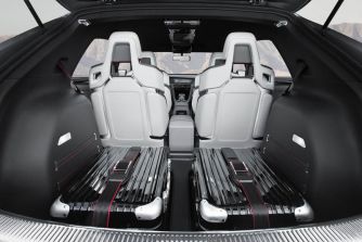 Die Studie ist mit 4 Einzelsitzen ausgestattet, die alle als Schalen mit einer fest integrierten Kopfstütze konzipiert wurden. Die Rücksitzlehnen und die Lehne des Beifahrersitzes können komplett nach vorn geklappt werden. Hilfreich dabei: Die Rückenlehnen sind außen mit Kunststoffschalen verkleidet; umgeklappt entsteht so eine widerstandsfähige Ladefläche. Der Kofferraum hinter den Rücksitzen fasst ein Volumen von 380 Litern (bis Höhe Fensterkante). Wird der 1.724 mm lange Innenraum bis zu den Lehnen der Vordersitze und dachhoch beladen, steigt das Volumen auf 1.230 Liter.